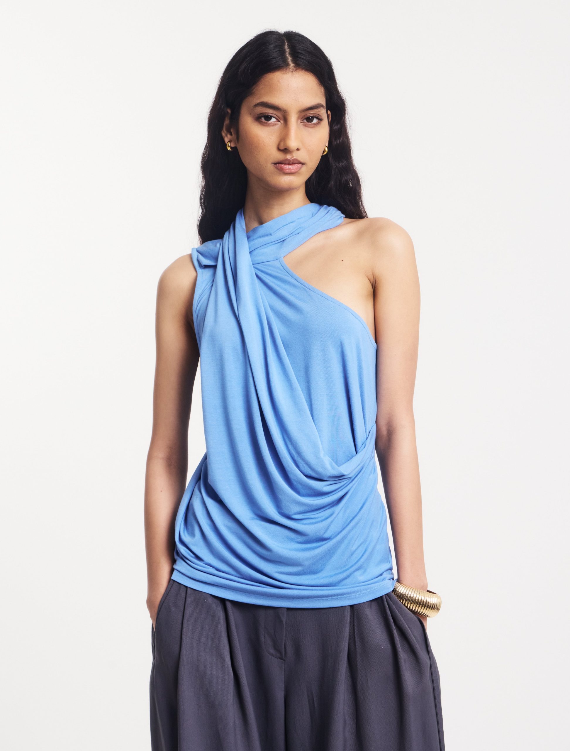 Sophisticated drape for modern poise. The Zora Drape High Neck Top features a high neck with draped fabric for an artistic, enveloping fit that’s both cosy and chic. Made from stretch jersey, it’s designed for comfort without compromise. Style it with slim pants for balanced proportions. Each purchase you make helps us give back 90% of our profits to our people and causes we believe in.