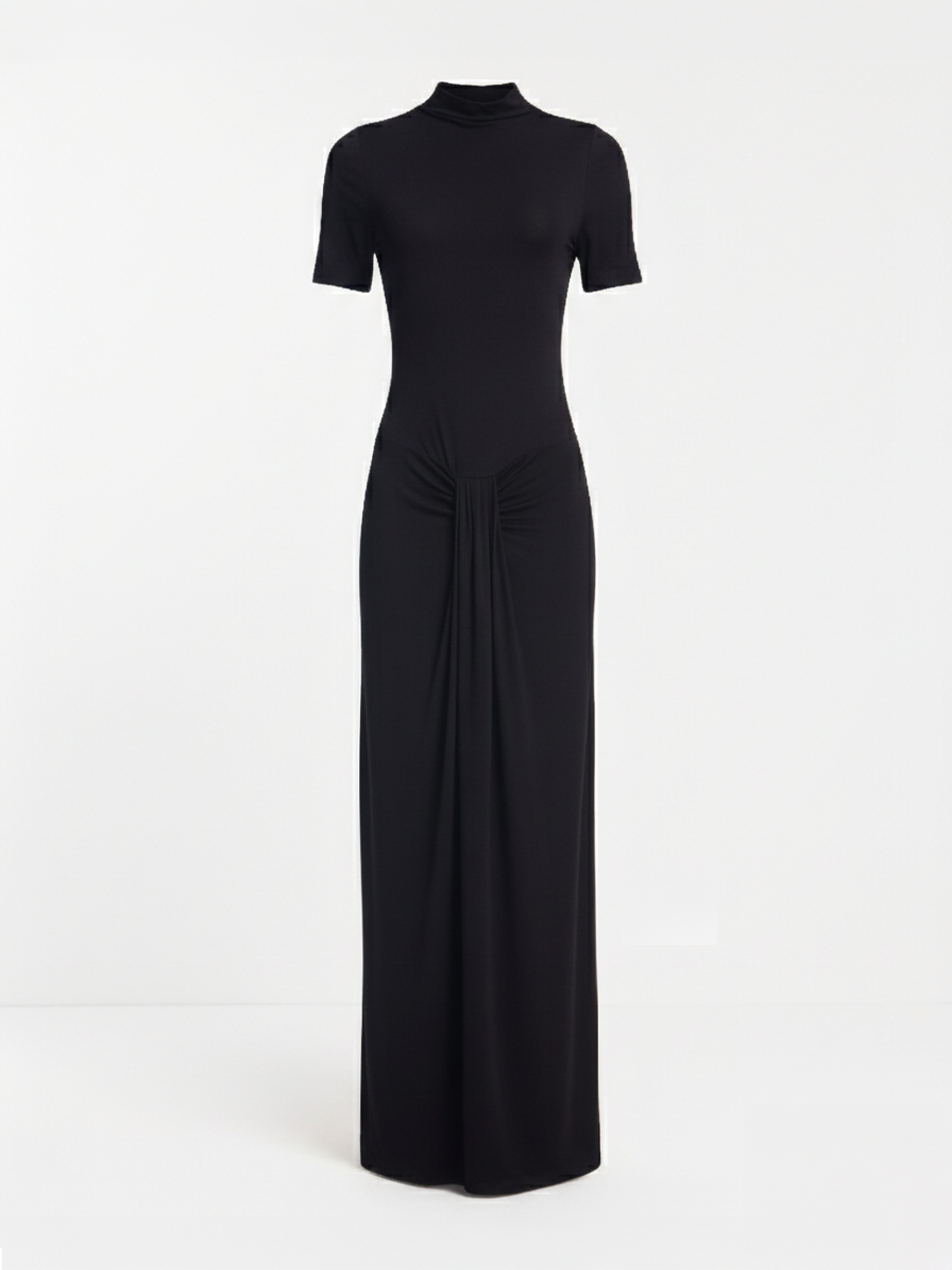 Sarong-inspired for unique drape. The Nell Sarong Skirt Funnel Neck Dress blends funnel neck with sarong skirt for versatile style. Stretch jersey comfort. Each purchase you make helps us give back 90% of our profits to our people and causes we believe in.